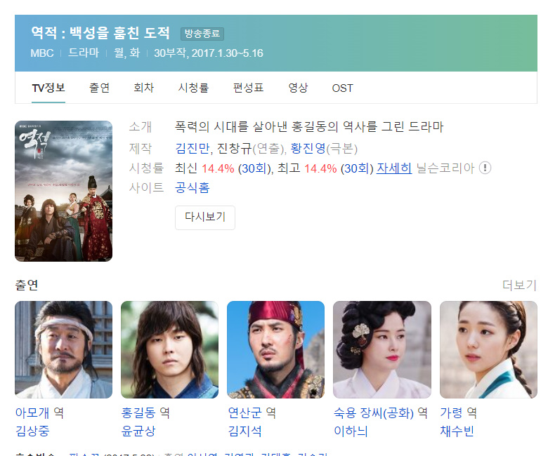 이러한 일반 민중의 한을 홍길동이란 인물이 통쾌하게 갚아주는 것이다. 홍길동이란 인물은 허균의 소설에 나오는 가상의 인물이기도 하지만 연산군때의 실제 인물이기도 하다. 드라마 역적은 연산군 시기이므로 허균의 홍길동과 실제 인물의 이야기를 적당히 섞은 것 같다. 드라마 이야기만을 말한다면 우리나라는 신분제를 타파하는 시민혁명을 이룬 것이다. 얼마나 앞서 나간 민족인 것인가? 실제로 그 당시 시민혁명이 이루어졌었기를 바라는 마음이 간절하다.